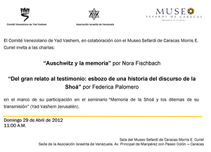 Ambas ponentes participaron en febrero de 2012 en el seminario "Memoria de la Shoá y los dilemas de su transmisión" en la Escuela Internacional para el Estudio del Holocausto adscrita a Yad Vashem Jerusalén. Las reflexiones que exponen en este evento son fruto de esta experiencia.