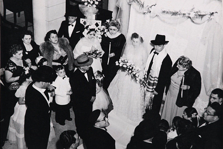 Fotografía de la boda de Lilian Wuani y Alberto Ettedgui en la Sinagoga de El Conde, Caracas, 1952