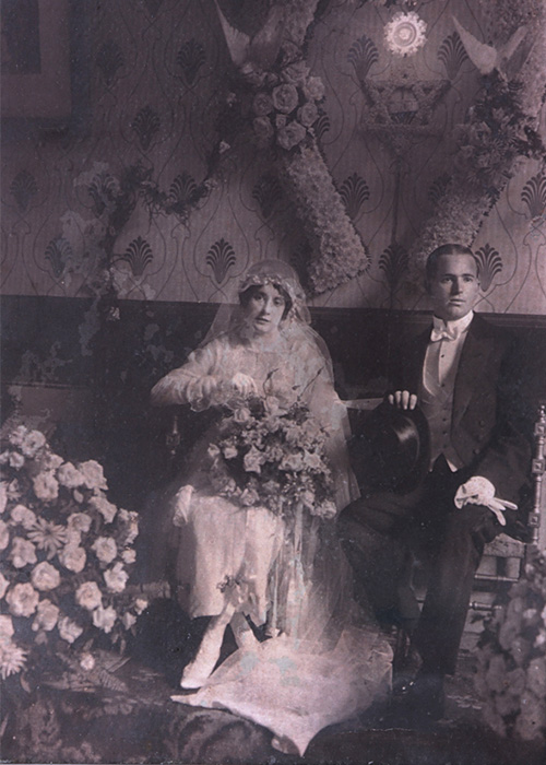 Fotografía de la boda de Raquel Reneta Baíz y Elías Curiel, padres de Morris E. Curiel, 1918