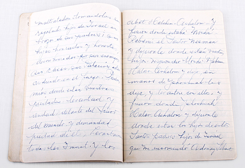 Libreta de espiral manuscrita, en hebreo con caracteres latinos y en español