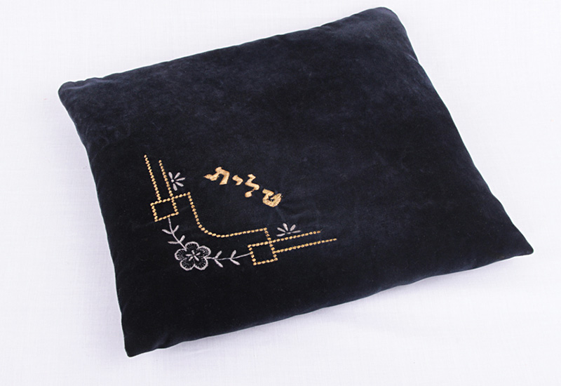 Bolsa: terciopelo bordado con hilos dorados, 32 x 36 cm