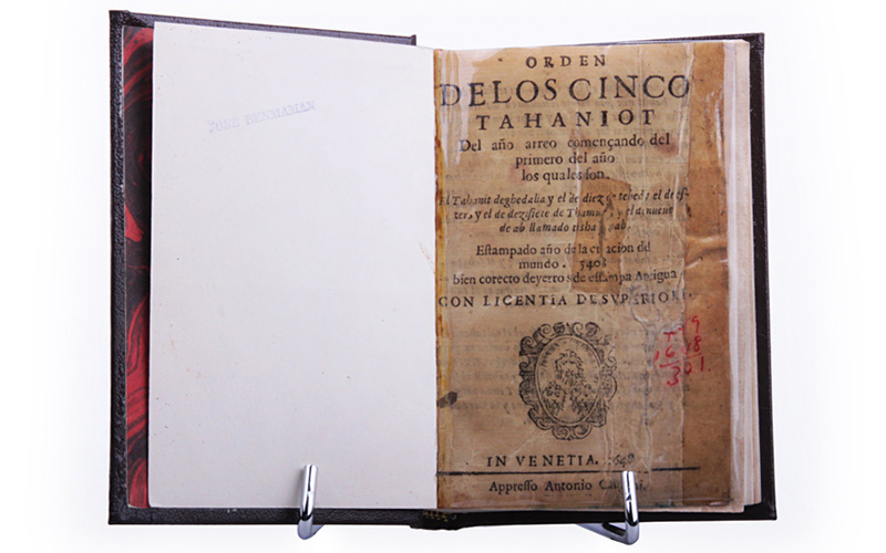 Libreo empastado en cuero, impreso en hebreo y español antiguo, con su estuche de cuero