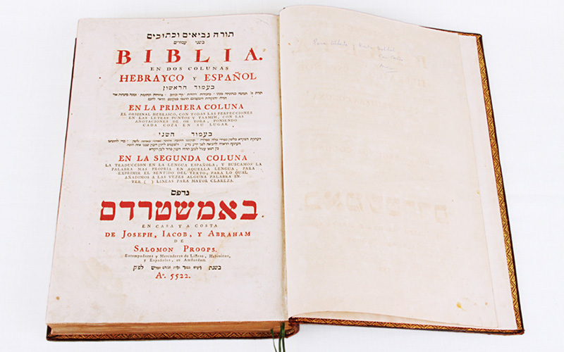 La Biblia en dos colunas hebrayca y espanol, en casa y a costa de Joseph, Lacob y Abraham de Salomón Proops, Amsterdam, 5522(1782)