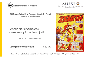 El domingo 18 de marzo el arquitecto e investigador de las ciudades de los cómics, Ricardo Sanz, dictó una charla sobre los superhéroes en la ciudad de Nueva York. La presentación fue en la sede del Museo Sefardí de Caracas (Asociación Israelita de Venezuela) a las 11:00 am.